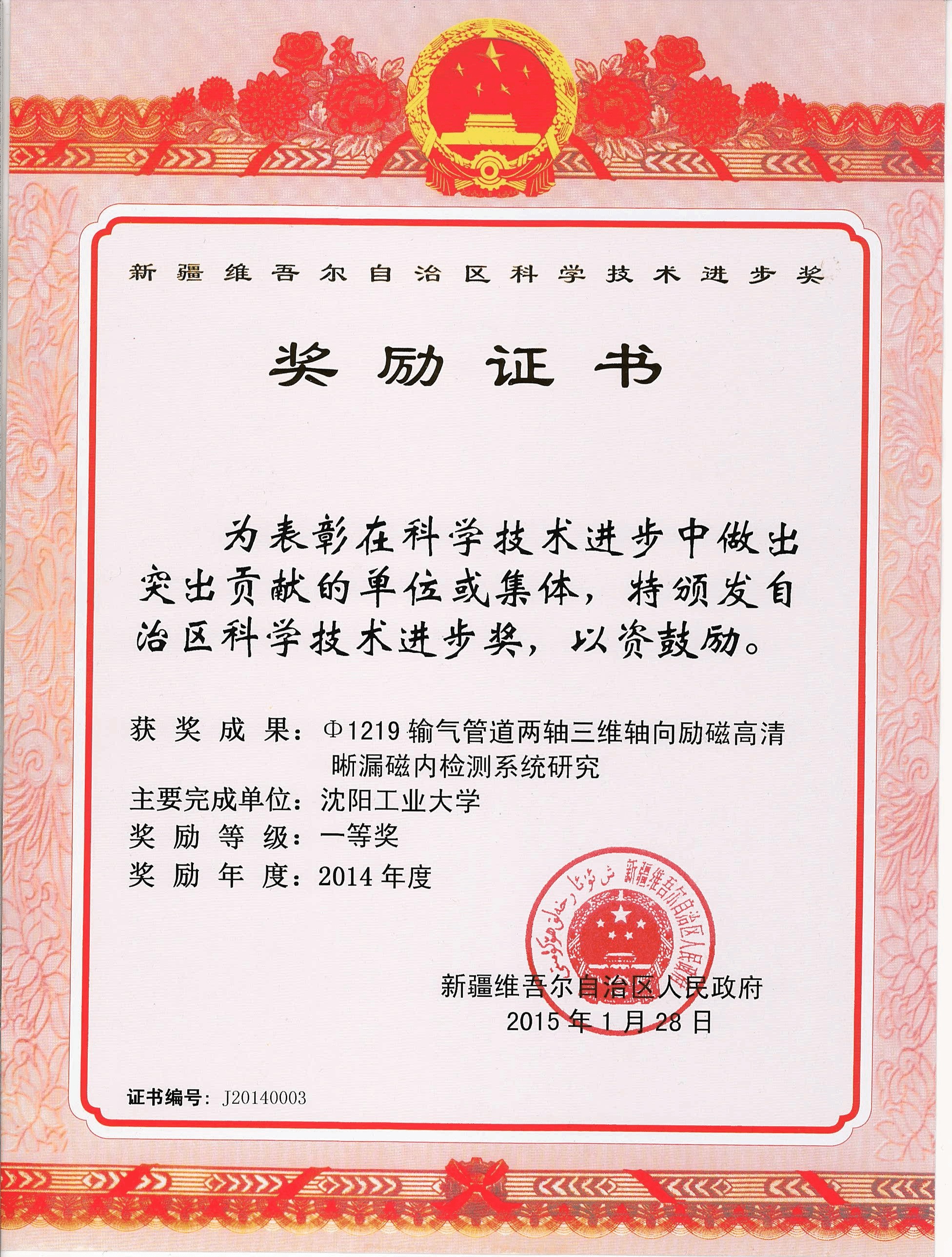 图3 2014年度新疆维吾尔自治区科技进步一等奖