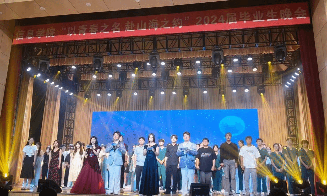整场晚会分为祝愿、青春、启航三个篇章,包含了歌曲、舞蹈、乐器合奏等多种艺术表现形式,演员主要以2024届毕业生为主。毕业生选送的节目聚焦回忆与感恩,表达了毕业生对美好大学生活的眷恋、对母校和学院悉心培养的感谢、对师生情的珍重,以及对未来的期许与憧憬。在校师生选送的节目围绕祝福与希望,表达了全院师生对即将踏上新征程、走向新岗位、开启新生活的毕业生的美好祝愿。计算机科学与技术系教师杨威与毕业生合作演唱的歌曲《离别开出花》将晚会推向第一个高潮。电子信息工程系主任朱建光,通信工程系主任刘笑楠,计算机科学与技术系主任杨海波,测控党支部书记张佳,电子党支部书记李萌五位老师的登台,与毕业生的深情互动,展现了浓浓的师生情谊。整台晚会氛围热烈、精彩纷呈,观众掌声不断,温暖与感动交融交织。