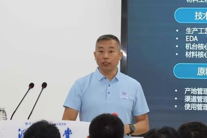 报告中,谷强首先表示,能够在学校建校75周年校庆之际接到学院邀请返回母校与在校师生面对面交流感到非常的荣幸,深情表达了对母校和学院多年来辛勤培育的感激之情,并祝愿母校越办越好、学院事业蒸蒸日上。随后,他从半导体全球化供应链体系的现状切入,结合多年的个人经历,以翔实的数据和生动的案例,从生产制造、资源管理、核心技术和管理渠道四个方面,介绍了全球供应链体系的发展与变迁。结合当前的“卡脖子”问题,从断链修复和体系再造两个方面,谈了对全球供应链重构的理解和认识。报告最后,他勉励同学们,要充分认识专业学习的重要性,不断提升自我认知的能力,主动适应环境的变化,明确远期目标和即期目标,确立正确的思想方法和思维方式,强化责任担当和自律自强,自觉担当起中华民族伟大复兴的历史使命。