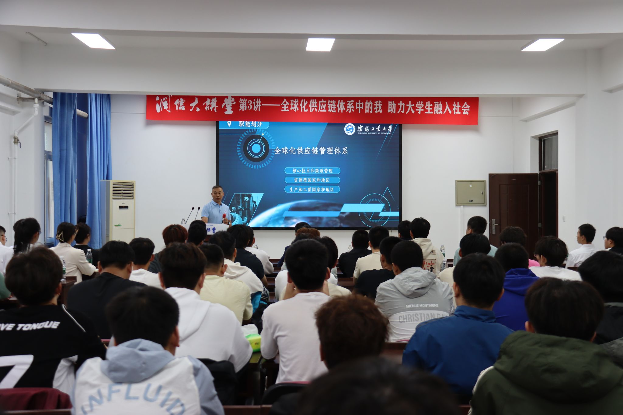 德润身心·笃信好学。9月20日下午,学院庆祝沈阳工业大学建校75周年主题活动——“润信大讲堂”第3讲在学院楼529报告厅如期开讲。我校微电子技术专业1998届校友、学院第二届北京校友会秘书长、华展鑫荣国际招标代理(北京)有限公司副总经理谷强,应邀担任主讲嘉宾,以《全球化供应链体系中的我——助力大学生融入社会》为题做了一场专题学术报告。我校检测专业1998届校友王鸿礽、电子科学与技术专业2000级校友李维成,学院党委副书记兼副院长董科、电子科学与技术系主任张贺,以及青年教师和学生代表,共120余人参加报告会。