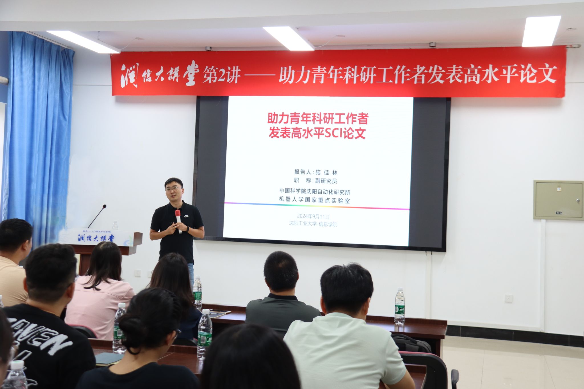 德润身心·笃信好学。9月11日下午,“润信大讲堂”第2讲在学院楼529报告厅如期开讲。我院检测技术与自动化装置专业2013届校友、中国科学院沈阳自动化研究所、机器人学国家重点实验室副研究员施佳林,应邀担任主讲嘉宾,以《助力青年科研工作者发表高水平论文》为题做了一场专题学术报告。我院青年教师代表、在读硕士和博士研究生代表,共120余人参加报告会。