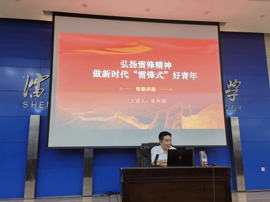 张仲国会长紧紧围绕知雷锋、学雷锋、做雷锋三个方面,与在场同学们分享了自己多年来研究雷锋精神与学习践行雷锋精神的成果、收获与感悟。张会长追寻雷锋足迹,走访雷锋生前的领导、亲人、战友和帮助过的人,收集整理大量雷锋的照片、文字、相关报道、领导人题词和事迹等珍贵资料,通过激情洋溢的讲授给大家还原了一个真实的、亲切的、感人的雷锋。张仲国赠送与会师生书法作品并深切寄语党员、青年:永葆初心,做有理想的好青年;敢为人先,做敢担当的好青年;艰苦奋斗,做能吃苦的好青年;自强不息,做肯奋斗的好青年!青年要做好雷锋精神的种子,弘扬并践行雷锋精神,把雷锋精神广播在祖国大地上。