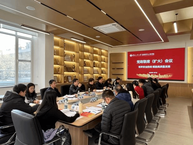专题学习会后,学院围绕“筑牢安全防线 赋能学院高质量发展”及时召开了党政联席(扩大)会议,刘斌锚定学院“十四五”规划目标,对未完成的核心任务明确时间节点与责任主体,实施靶向突破,分析学科、人才等领域的差距,明确“十五五”发展路径。李春华明确表示,安全是发展的前提,发展是安全的保障,统筹发展和安全,是我们党治国理政的一个重大原则,学院持续巩固“一融双高”格局,将党的二十届四中全会精神的学习成果转化为推动工作的强大动力,引导干部师生担当作为,确保安全防线稳固,重点任务落地见效。