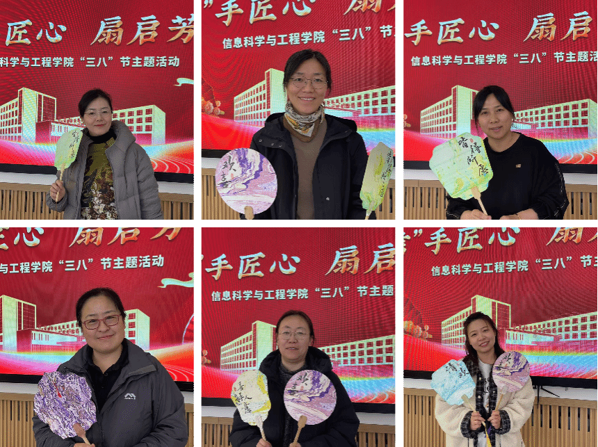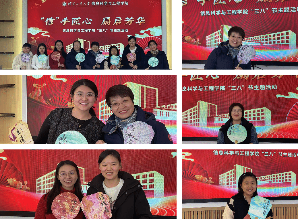 女教职工们在亲手制作漆扇过程中,充分发挥自己的想象力和创造力,用不同颜色的颜料、不同意境的扇子绘制出各种精美的图案,每一把漆扇都凝聚着制作者的心血和情感,展现出独特的艺术魅力,大家沉浸其中,互相交流制作心得,分享彼此的作品,现场充满了欢声笑语,手持自己精心制作的漆扇,在活动现场留下了一张张笑脸。