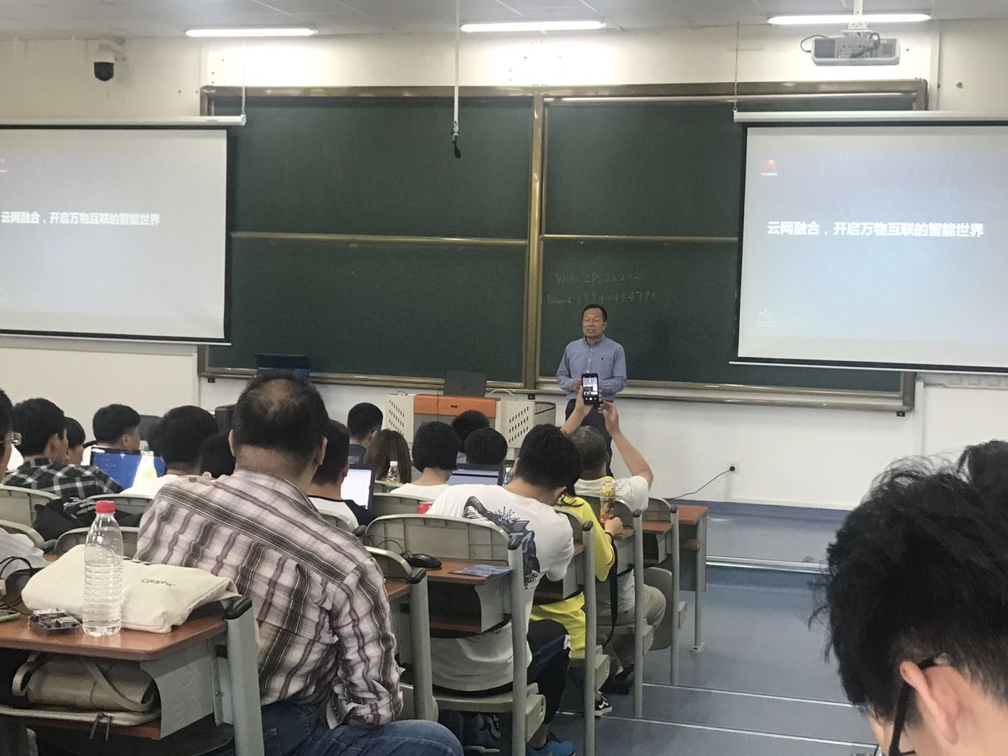 德州仪器的演讲嘉宾详细地介绍了Simple Link 技术在物联网中的广泛应用,霍尼韦尔公司则介绍了从工业到全行业的物联网通用架构,讲座内容引人入胜,让同学们更加坚定了要完成作品的决心和信心。