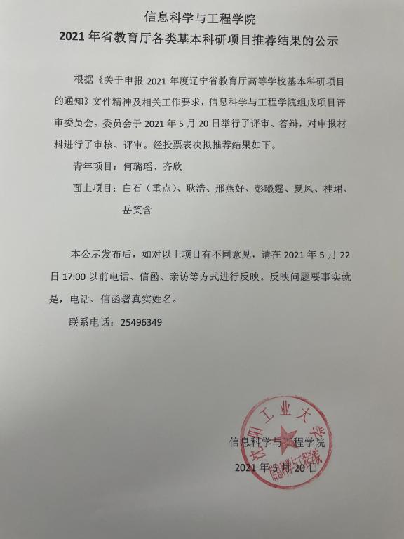 2021年省教育厅关于各类基本科研项目推荐结果的公示